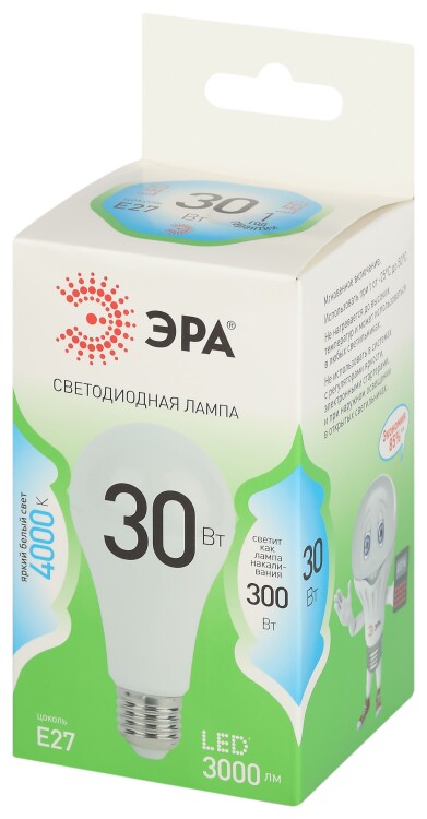 Светодиодная лампа ЭРА LED A65-30W-840-E27 GL серии Green Line — это мощный и энергоэффективный источник света, заменяющий традиционные лампы накаливания. Лампочка с цоколем E27 и потребляемой мощностью 30 Вт излучает нейтральный белый свет (4000K) без мерцания. Увеличенная форма A65 (груша) и стандартный цоколь E27 позволяют использвать лампу в люстрах, потолочных светильниках, торшерах и бра. Высота лампы: 130 мм. Работает от сети 220 В, эквивалентна 300 Вт лампе накаливания. Светодиодные лампы ЭРА отличаются высокой яркостью, долгим сроком службы и низким энергопотреблением. Идеально подходят для освещения жилых, офисных и коммерческих помещений. Не нагреваются и устойчивы к перепадам напряжения.