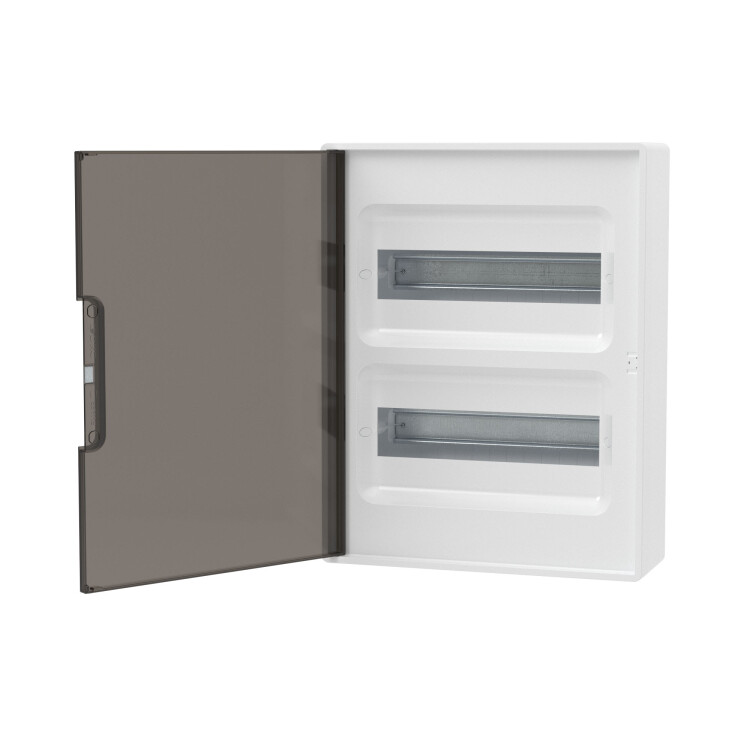 Щиток «Фрейм» (FRAME) предназначен для монтажа в жилых и административных помещениях. Применяется для установки модульных устройств. Установка стандартных латунных шин возможна по всем стенкам корпуса щитка. Единый корпус шинодержателя можно разделить на сегменты, и использовать отдельно, под различные длины шин, в зависимости от задач. Симметричный корпус щитка позволяет открывать дверь слева или справа.Количество модулей - 24. Цвет корпуса белый, цвет двери - тонированная, ширина - 311,6 мм, высота - 398,6 мм, глубина - 102 мм. Материал - термостойкий и ударопрочный пластик. В комплекте: DIN-рейка из гальванической оцинкованной стали, сборочные винты для сборки щитка, 4 шины PEN 2 на 6 отверстий + 2 на 8 отверстий, 2 шинных держателя на 7 сегментов, наклейки для маркировки, инструкция по сборке.