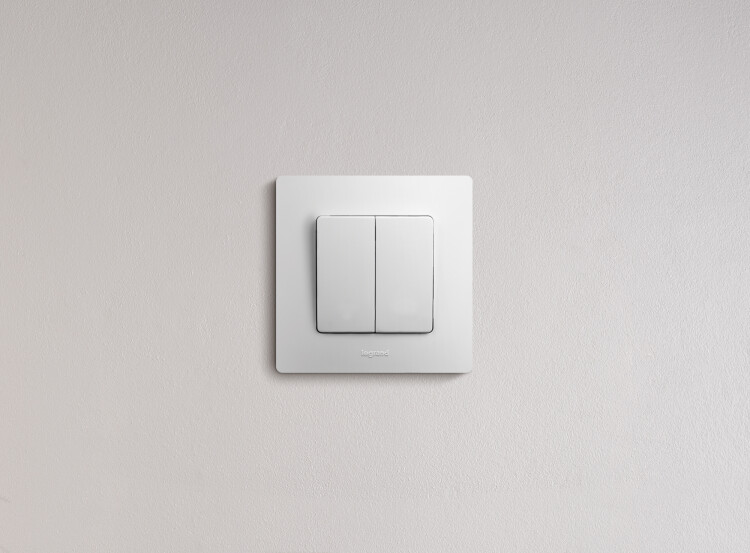 Выключатель двухклавишный Legrand Etika для скрытого монтажа, номинальный ток 10 А, цвет белый ,предназначен для управления двумя электрическими цепями.
