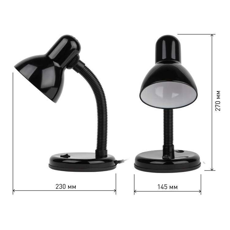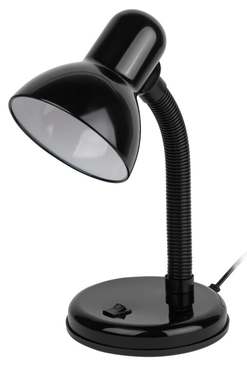 Металлический плафон. Направление света рег улируется гибкой стойкой, которая обеспечивает наклон и поворот плафона в любом направлении. Выключатель на основании. Классический дизайн.