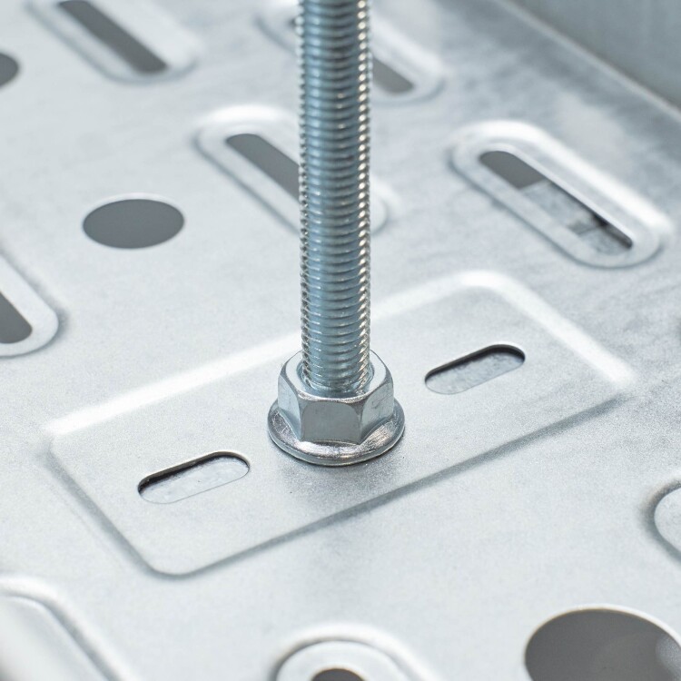 Гайка с насечкой, препятствующей откручиванию, применяется для соединения между собой кабельных лотков и крепления лотков к монтажным аксессуарам.
