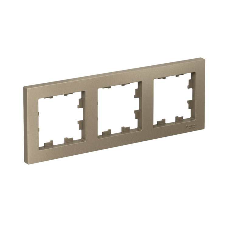 Рамка Systeme Electric (ранее Schneider Electric) серии AtlasDesign в цвете шампань трёхместная. Устанавливается в вертикальном и горизонтальном положениях. Лицевые детали из качественного ABS-пластика, устойчивого к царапинам и УФ-излучению. Позволяет гармонично вписать электроустановочное изделие в интерьер помещения.