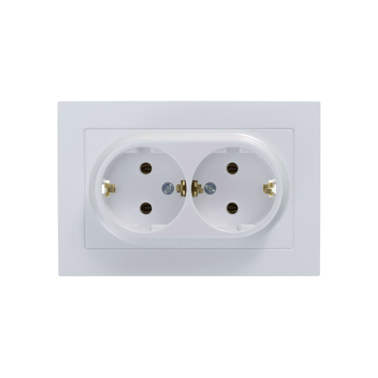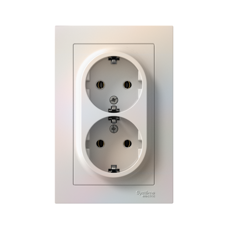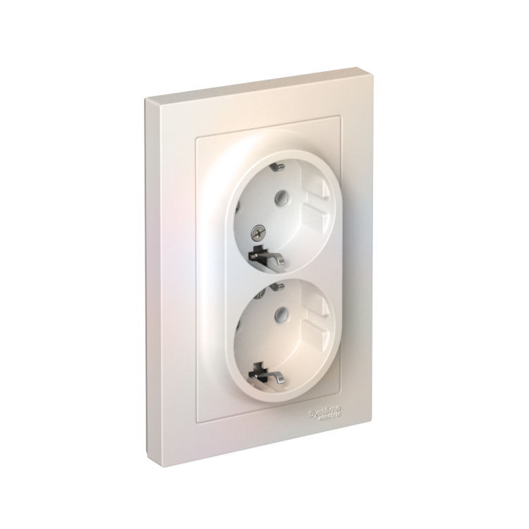 Розетка двойная в сборе Systeme Electric (ранее Schneider Electric) серии AtlasDesign в цвете жемчуг с заземлением, без шторок подходит для сетей 250 В, на ток 16 А. Заземляющий контакт обеспечивает дополнительную защиту от удара электрическим током. Лицевые детали из качественного ABS-пластика, устойчивого к царапинам и УФ-излучению. Двойная розетка позволяет подключить два устройства в одном месте. Изделие поставляется в комплекте с рамкой того же цвета.