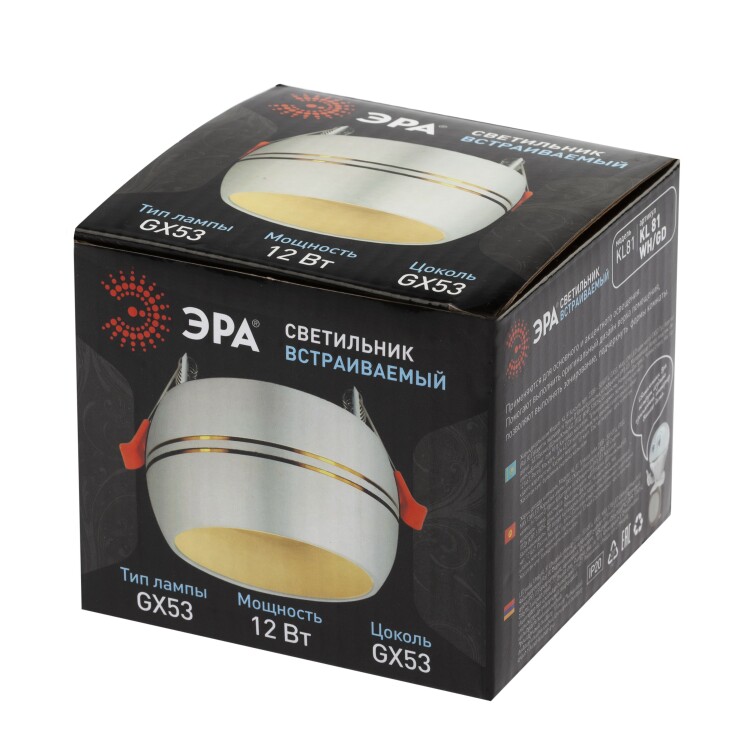 ЭРА Светильник встраиваемый KL81 WH/GD под лампу GX53 белый/золото