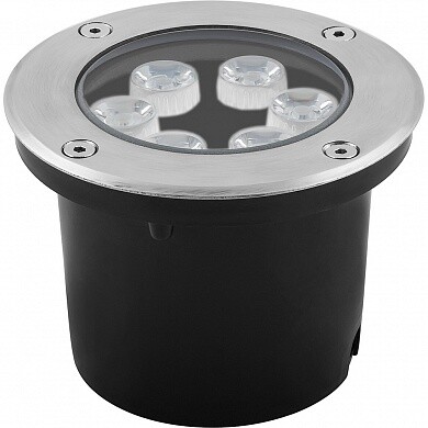 Тротуарный светильник светодиодный, встраиваемый (ДВУ) FERON SP4112, 6W, 2700К (теплый белый), 230V/50Гц, 450Lm, IP67, угол рассеивания 24°, 6LED*HPL, класс защиты 1, цвет металлик, корпус алюминий, сталь, 120*120*90мм, D внутр. 90мм