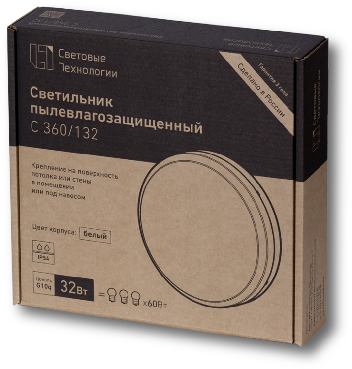 Накладной светильник круглой формы, может крепиться на потолок или на стену в помещении или снаружи под навесом (IP54). Имеет высокую степень защиты от влаги и пыли, может комплектоваться блоком аварийного питания или датчиком движения.
