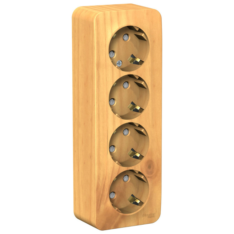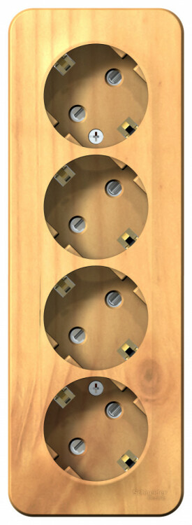 Systeme Electric Blanca наруж Ясень Розетка 4-ая с/з со шторками 16А, 250В, изолир. пластина