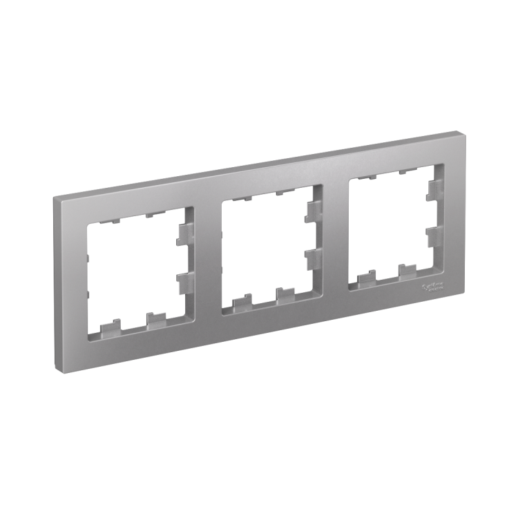 Рамка Systeme Electric (ранее Schneider Electric) серии AtlasDesign в цвете алюминий трёхместная. Устанавливается в вертикальном и горизонтальном положениях. Лицевые детали из качественного ABS-пластика, устойчивого к царапинам и УФ-излучению. Позволяет гармонично вписать электроустановочное изделие в интерьер помещения. (ранее Schneider Electric ЭУИ UNICA NEW, ЭУИ ODACE NU200630, S52P806J, S52P806K, S53P806, S53P806J)