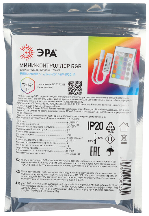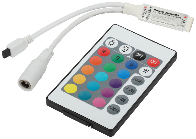 ЭРА Контроллер мини для светодиодной ленты с ИК пультом RGBController-12/24V-72/144W-IP20-IR