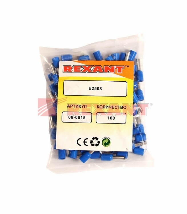 REXANT Наконечник штыревой втулочный изолированный F-8мм 2.5мм² (НШВи 2.5-8) синий.