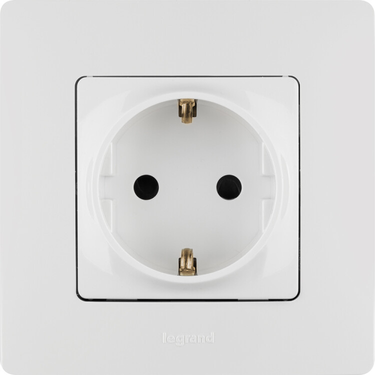 Розетка с заземлением и защитными шторками Legrand Etika для скрытого монтажа, цвет белый. Максимальный ток 16 А, максимальная мощность 3680 Вт. Применяется в зданиях, оборудованных для повышения безопасности проводкой с заземлением (с защитным проводником). Рекомендуются к применению в квартирах и помещениях с детьми. Шторки осуществляют защитную функцию путём ограничения доступа к токоведущим контактам. Доступ открывается только при подключении вилки.