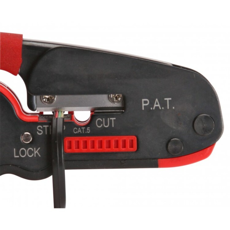 4 в 1:;обжим разъемов RJ;снятие изоляции с плоских телефонных проводов с фиксированной длиной зачистки,;снятие оболочки с круглых проводов типа UTP, STP;резка проводов;Встроенные матрицы: 8Р, 6Р;Параллельный ход пуансонов гарантирует профессиональное качество работ;Обжим разъемов: 8Р8С (RJ-45), 6Р6С (RJ-12), 6P4C (RJ-11), 6Р2С;Блокиратор рукояток, возвратная пружина;Защитная панель, предохраняющая от порезов;Обработка поверхности: воронение;Эргономичные рукоятки из термопластрезины;Инновационный дизайн;Вес: 310 г;Длина: 140 мм;