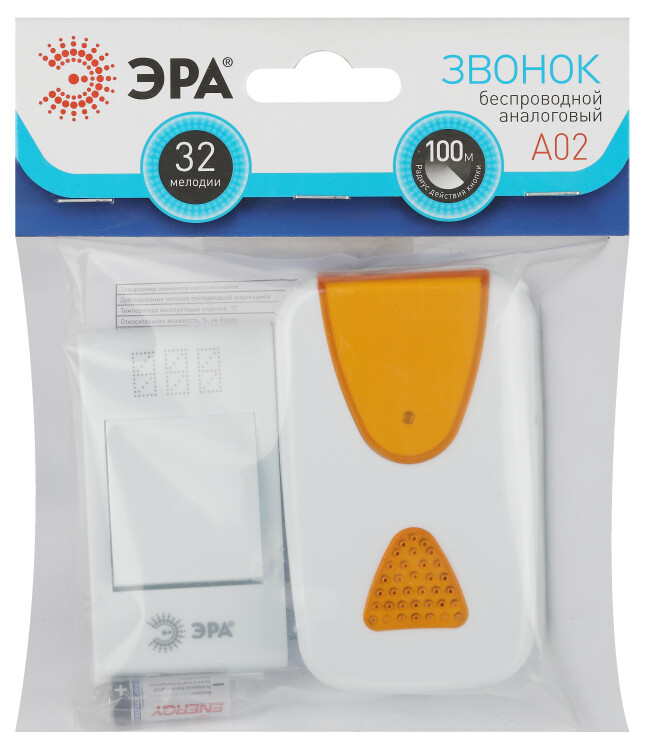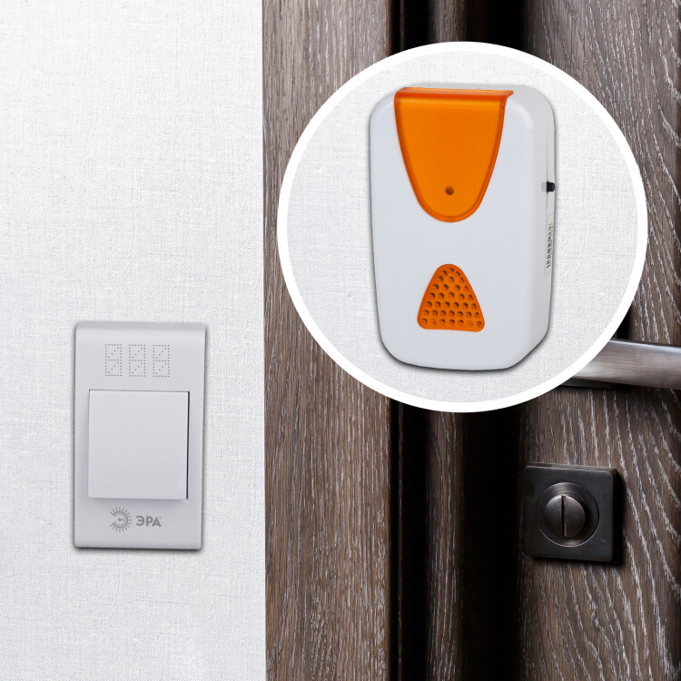 Беспроводной аналоговый дверной звонок с 32 полифоническими мелодиями. Ловит сигнал в радиусе до 100 метров. Работает от батареек: 1 шт А23 для кнопки (входит в комплект), 2 шт ААА мизинчиковые для динамика (в комплект не входят). Кнопка и динамик имеют степень защиты IP20 (не подходит для использования на улице). Бело-оранжевый дизайн, аккуратная форма динамика. Над кнопкой предусмотрено пространство для указания номера квартиры. Звук звонка не надоест со временем, так как мелодии легко менять по настроению.