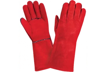 Краги спилковые пятипалые красные (нить KEVLAR)