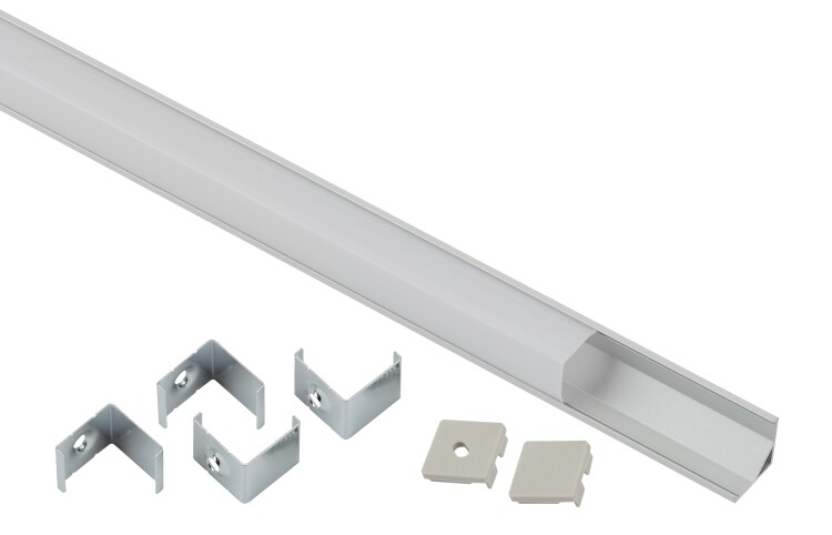 Комплект углового алюминиевого профиля предназначен для установки светодиодных лент с шириной подложки до 10 мм. За счёт отведения тепла увеличивает срок службы светодиодной ленты. Анодированное покрытие обеспечивает устойчивость к воздействиям окружающей среды и легко окрашивается. Эстетично смотрится в интерьере, обеспечивает механическую защиту. В комплекте угловой алюминиевый профиль CAB280 16х16 мм 2 м, белый матовый экран из поликарбоната 2 м, 4 крепления и 2 заглушки.