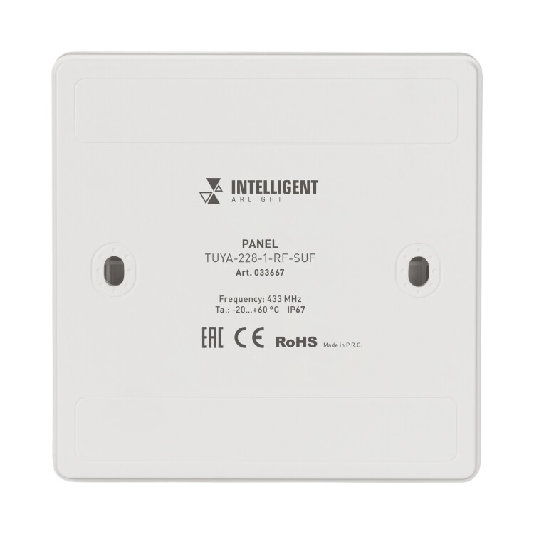 Arlight INTELLIGENT Панель TUYA-228-1-RF-SUF (kinetic, 433MHz) (INTELLIGENT IP67 Пластик, 3 года)
