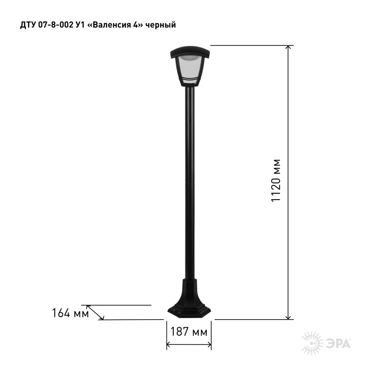 ЭРА Садово-парковый светильник ДТУ 07-8-002 Валенсия 4 черный 4 гранный напольный IP44 светодиодный 8Вт 6500K