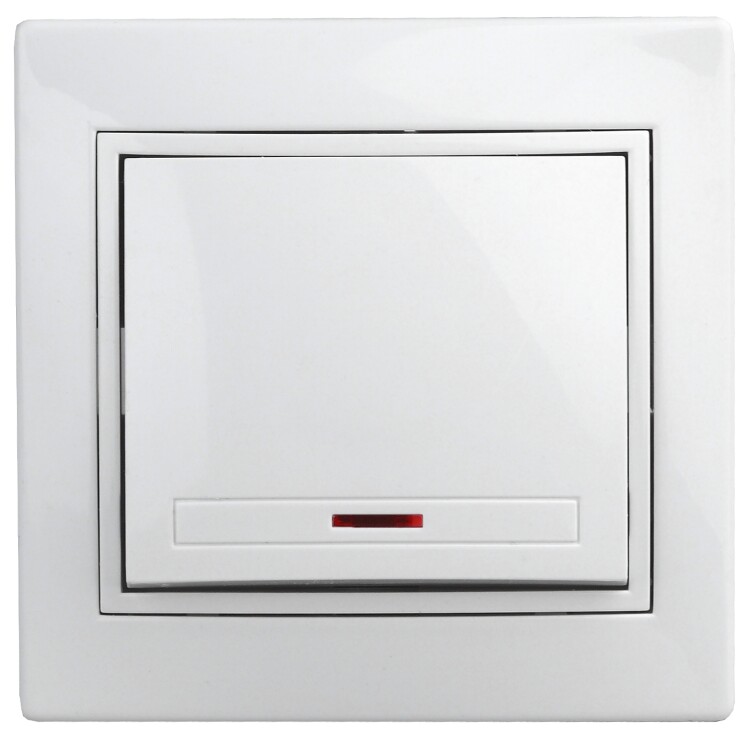 Выключатель одноклавишный с подсветкой, 10А-250В, IP20, СУ, белый Intro Plano 1-102-01