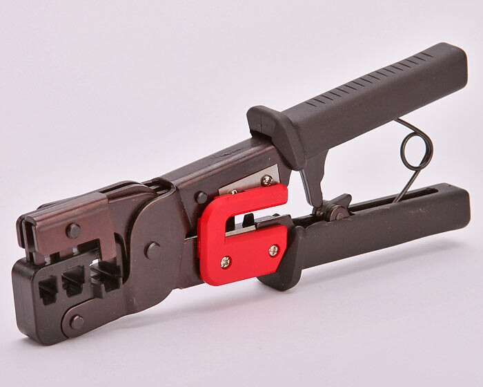 3 в 1: обжим разъемов RJ снятие изоляции с плоских телефонных проводов с фиксированной длиной зачистки, с круглых проводов типа UTP, STP резка проводов Встроенные матрицы: 8Р, 6Р, 4Р Обжим разъемов: 8Р8С (RJ-45), 6Р6С (RJ-12), 6P4C (RJ-11), 6Р2С, 4P4C (RJ-22), 4P2C Храповой механизм, гарантирующий полный цикл опрессовки Механизм разблокировки, возвратная пружина Защитная панель, предохраняющая от порезов Обработка поверхности: воронение Вес: 490 г Длина: 225 мм
