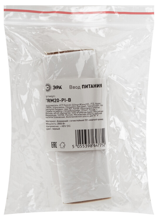 ЭРА Ввод питания TRM20-PI-B для магнитного шинопровода черный для системы NOVA