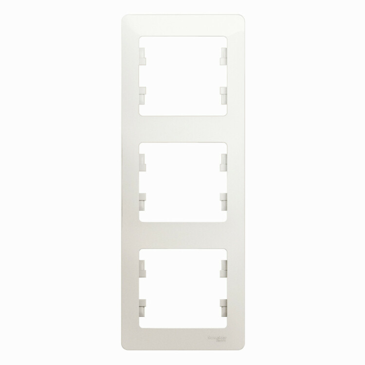 Рамка Systeme Electric (ранее Schneider Electric) серии Glossa (цвет перламутр) трёхместная. Устанавливается в вертикальном положении. Выполнена из материала PС+ASA, стойкого к УФ-излучению и появлению царапин. Позволяет гармонично вписать электроустановочное изделие в интерьер помещения.