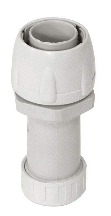 Муфта труба-труба армированная IP65 GS предназначена для быстрого соединения гибкой армированной трубы и жесткой гладкой трубы разных диаметров.