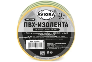 Изолента ПВХ 19х20м Желтая-зеленая AVIORA Профессиональная