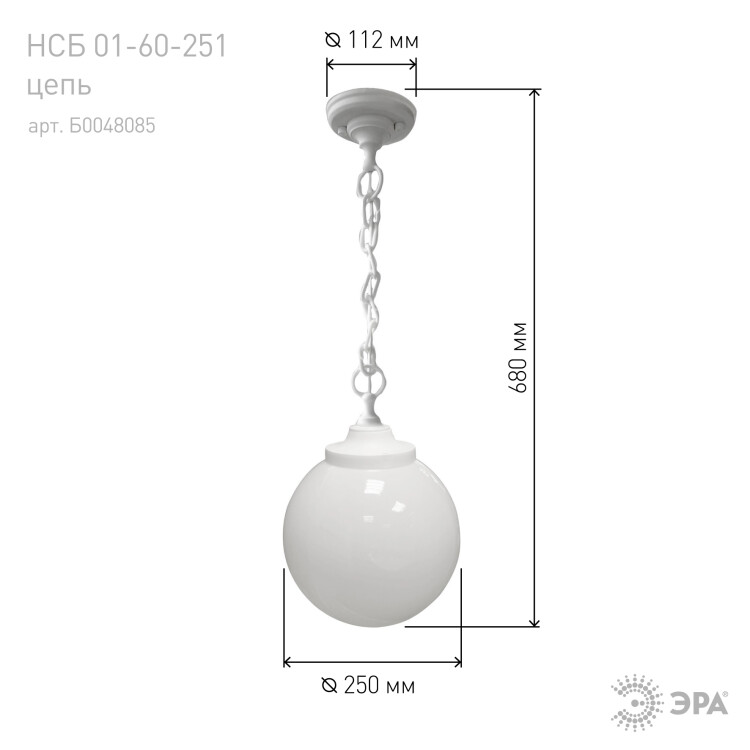 ЭРА Cветильник потолочный НСБ 01-60-251 шар опаловый подвесной на цепи IP44 Е27 max 60 Вт d250mm