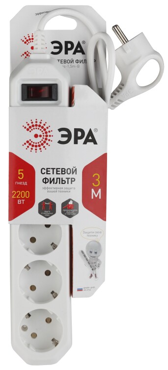 Сетевой фильтр ЭРА USF-5es-3m-W с базовой защитой выступает необходимым аксессуаром в квартире. Он позволяет безопасно подключать технику, надежно защищая ее перегрузки сети, короткого замыкания, фильтруя импульсные помехи. Его мощность составляет 2200 Вт, что обеспечивает надежную бесперебойную работу всех подключенных устройств. На корпусе фильтра расположены 5 розеток и выключатель с подсветкой, и это создает дополнительное удобство при эксплуатации. В ежедневном быту часто возникает необходимость использовать удлинитель, и сетевой фильтр ЭРА прекрасно справляется с этой задачей. Длина его провода составляет 3м. Его легко использовать в переделах комнаты или эксплуатировать, уходя в соседнюю. Сетевые фильтры разрабатываются собственным техническим бюро, проходят проверку на всех этапах производства, что обеспечивает высокое качество продукта.