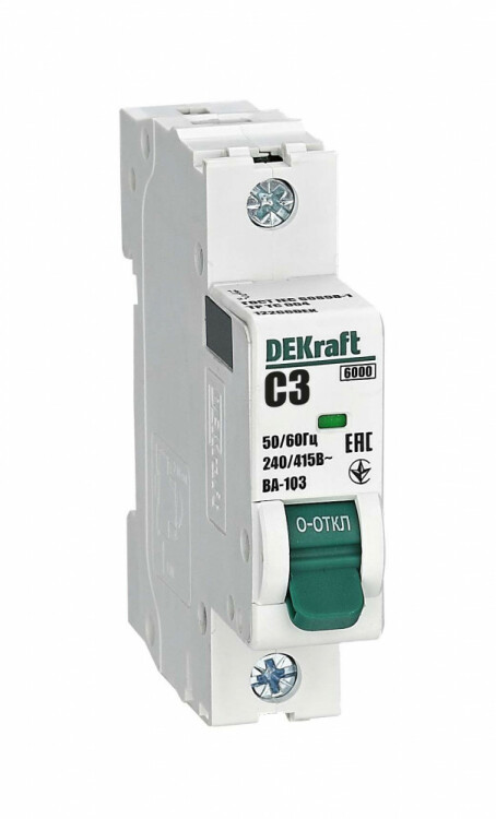 Автоматический выключатель серии ВА-103 NEW DEKraft; 1P; номинальный ток 3 А; характеристика C; отключающая способность 6 кА, что позволяет использовать аппараты в качестве вводных. 5 монолитных заклепок повышают прочность корпуса аппарата. Окошко-индикатор всегда показывает состояние контактов вне зависимости от положения рукоятки управления. Боковые каналы охлаждения повышают стабильность работы при высоких температурах окружающей среды. Есть возможность установки дополнительных аксессуаров с левой стороны устройства. Аппарат на 100% совместим с корпусами и оболочками DEKraft, Systeme Electric.