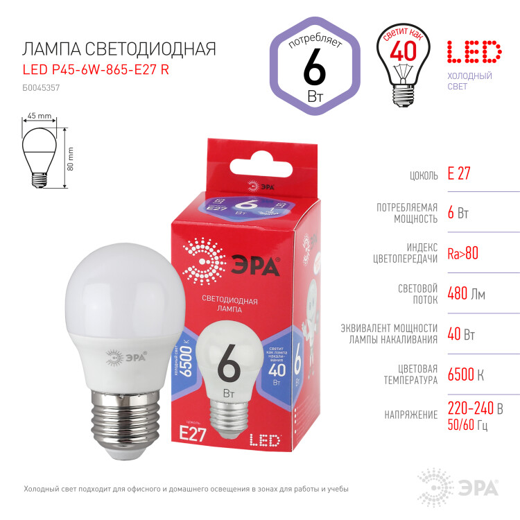 Экономичная светодиодная лампа ЭРА Серии Бюджет с отличными характеристиками для установки в люстры и все типы бытовых светильников - потолочные, настольные, бра. Бережёт электроэнергию, ярко светит, имеет долгий срок службы. Цветовая температура - холодный белый свет. Такое освещение бодрит, повышает работоспособность. Этот современный источник света создаёт комфортное и безопасное для глаз освещение.