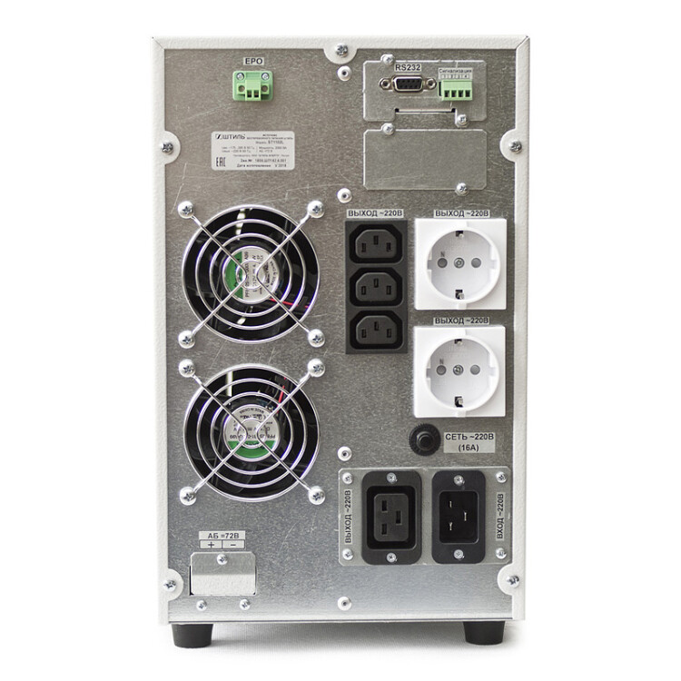 ИБП Штиль ST1102SL мощностью 2 кВА/1,8 кВт представляет собой однофазный источник бесперебойного питания напольного исполнения, принцип работы которого основан на технологии двойного преобразования (топология «on-line»). Он предназначен для обеспечения непрерывного электроснабжения IT-оборудования, торговых терминалов, банкоматов, систем безопасности и других чувствительных к электропитанию электронных устройств в домах, офисах и на производстве. ИБП ST1102SL укомплектован встроенными аккумуляторными батареями емкостью 9 Ач (обеспечивают до 6 мин автономной работы при 100% нагрузке), оснащен панелью управления с ЖК-дисплеем и LED-индикаторами, системой принудительного вентиляторного охлаждения с интеллектуальной системой регулировки скорости вращения, выходными EURO розетками (2 шт.) и розетками C13 (3 шт.) и С19 (1 шт.), двумя коммуникационными интерфейсами для опциональной установки карт мониторинга. Поддерживается ECO режим работы. Предусмотрена электронная аварийная защита от короткого замыкания, импульсных помех, перегрузки, перегрева и аварии сети.