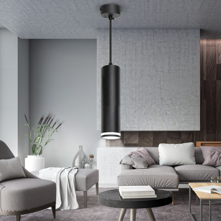 Подвесной светильник PL16 BK создает неповтори мый дизайн и уют в помещении. Подходит как для спален, так и для гостинной, столовой, прихожей комнаты. Выполняет не только осветительную функицию, но и является элементом декора. Подвесные светильники – это ультрамодный тренд, часто используемый дизайнерами. Цоколь для источника света GU10, напряжение питания ~230В 50/60Гц, материал алюминий, цвет светильника черный, размер D55*H280мм, максимальная мощность лампы 12Вт, степень защиты IP20