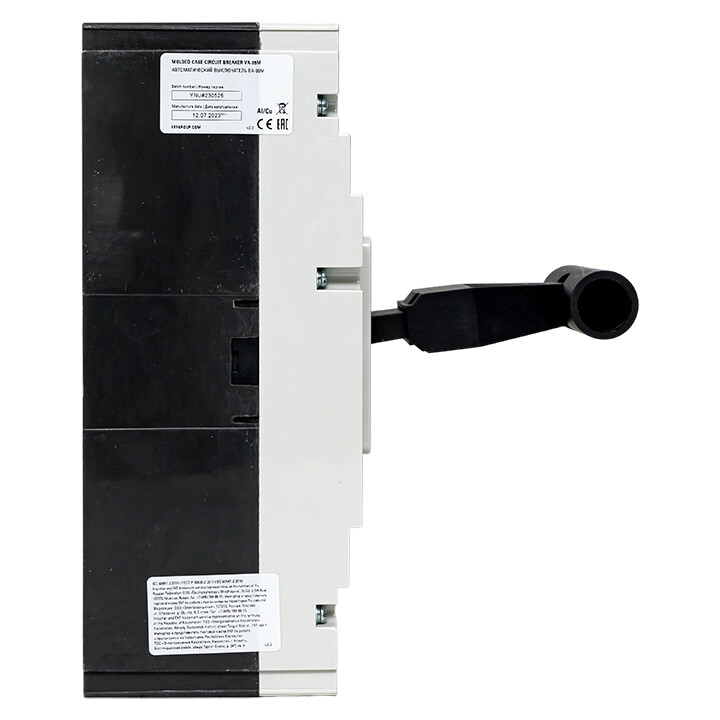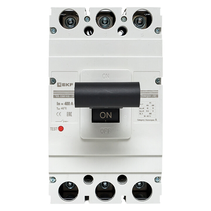 Выключатель ВА-99М выполнен в виде моноблока и состоит из основания и крышки с фальшпанелью, в которой имеется окно для рукоятки управления и толкатель кнопки «Тест» - проверки механизма отключения выключателя. Основание выполнено из термостойкой пластмассы, не поддерживающей горение и являющейся несущей конструкцией для присоединительных зажимов, неподвижных и подвижных контактов с системой дугогашения, механизма управления, блока защиты от сверхтоков. Крышка закрывает все подвижные элементы механизма управления и внутренние токоведущие части.