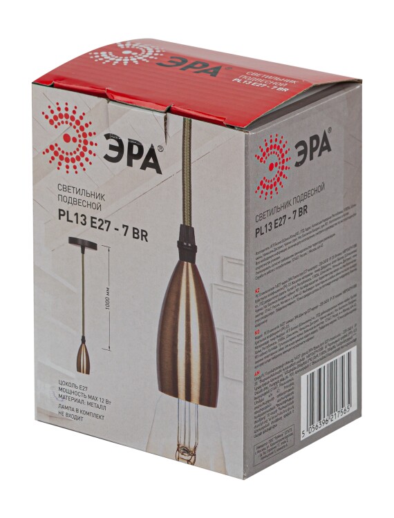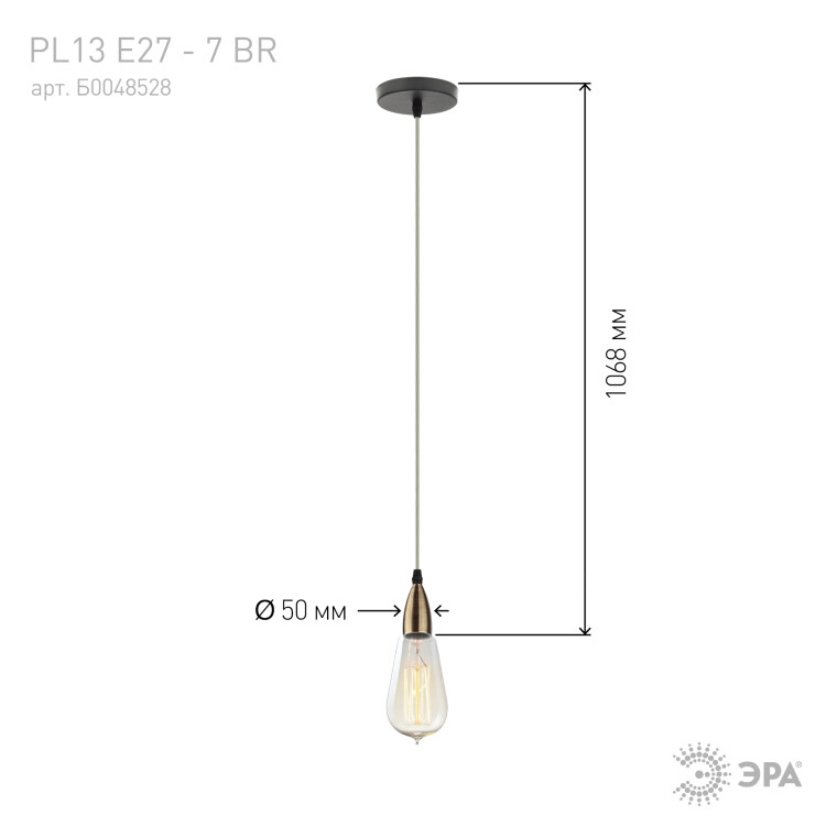 Светильник подвесной PL13 E27 - 7 BR является унив ерсальным источником света, легко монтируется и демонтируется в потолок. Создает неповторимый дизайн и уют в помещении. Подходит для спален, гостинной, столовой и других комнат. Цоколь для источника света E27, напряжение питания 220В ~50/60Гц, материал алюминий, цвет светильника медь, размер плафона H45*D88+1000 длинна провода, максимальная мощность лампы 50 Вт, степень защиты IP20