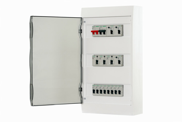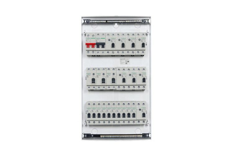 Распределительный щиток Systeme Electric серии City9 Box предназначен для установки аппаратов защиты и управления бытовой электроустановки. Щиток вешается на стену, имеет 3 DIN-рейки для установки 36 аппаратов по 18 мм. Прозрачная дверь щитка может быть установлена с правой или левой стороны. Щит Systeme Electric City9 Box на 100% совместим с модульным оборудованием DEKraft и Systeme Electric (ранее Schneider Electric MIP12312S).