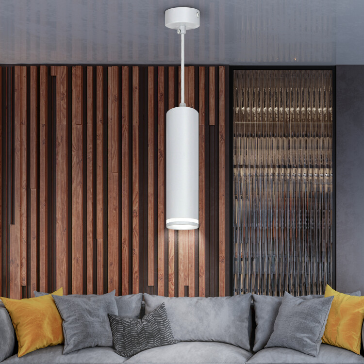 Подвесной светильник PL16 WH создает неповторимый дизайн и уют в помещении. Подходит как для спален, так и для гостинной, столовой, прихожей комнаты. Выполняет не только осветительную функицию, но и является элементом декора. Подвесные светильники – это ультрамодный тренд, часто используемый дизайнерами. Цоколь для источника света GU10, напряжение питания ~230В 50/60Гц, материал алюминий, цвет светильника белый, размер D55*H280мм, максимальная мощность лампы 12Вт, степень защиты IP20