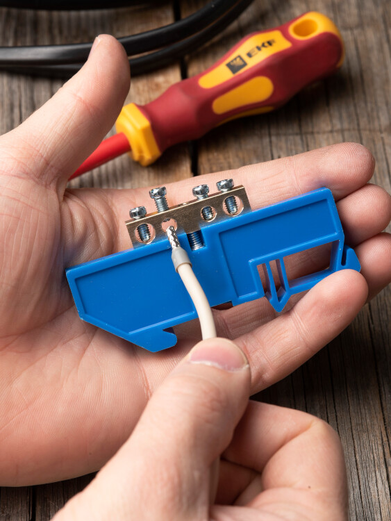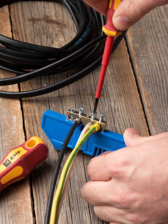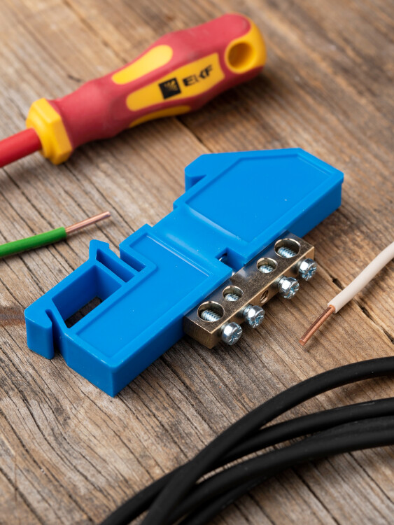 EKF PROxima Шина "0" N (6х9мм) 4 отверстия латунь синий изолятор на DIN-рейку.