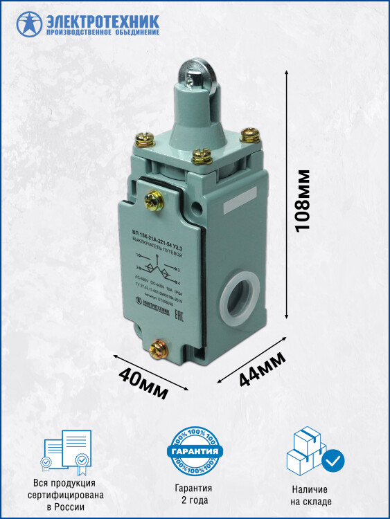 Электротехник ВП 15К-21А-221-54 У2.3, толкатель с роликом, полумгновенный, IP54, выключатель путевой (ЭТ)