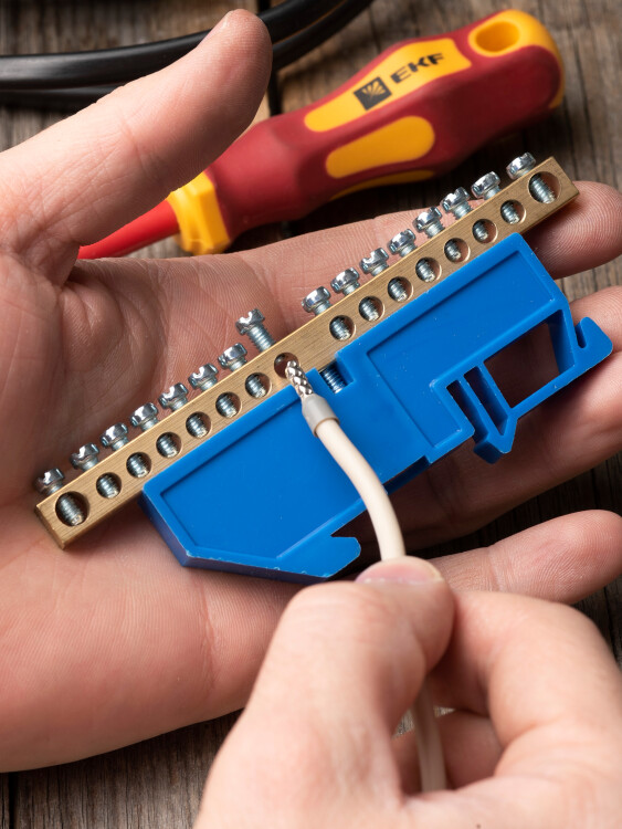 Шины предназначены для присоединения нулевых проводников (шина N) и заземления (шина PE). Шины выполнены из латуни и никелированной латуни. Нулевая шина устанавливается на изоляторе.