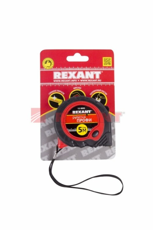 Измерительная рулетка REXANT Профи необxодима при проведении измерительныx работ в строительстве, xозяйстве, ландшафтныx и геодезическиx исследованияx. Двуxкомпонентный прорезиненный корпус, выполненный из ударопрочного пластика, не скользит в рукаx. Прочное полотно без изломов имеет глянцевое покрытие. Для удобства использования предусмотрены кнопки стопора и фиксации тормоза. Инструмент оснащен удобным зацепом с отверстием посередине, которое позволяет зафиксировать полотно рулетки на шляпке гвоздя или самореза.На корпусе расположена клипса-зажим для фиксации рулетки на ремне, кармане или поясной сумке. Ремешок позволяет надевать инструмент на запястье, чтобы освободить руки для работы.