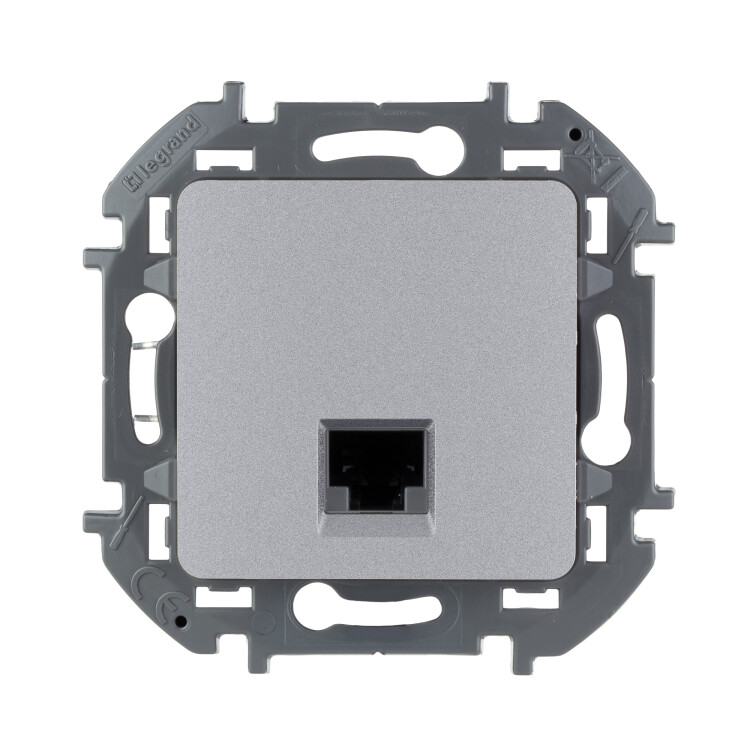 Розетка компьютерная для скрытого монтажа Legrand/Daccord Inspiria, 1 разъем RJ45 категория 5е UTP, цвет "Алюминий".