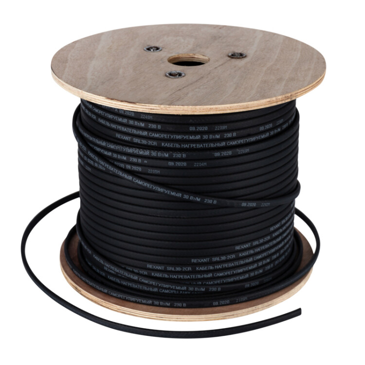 REXANT Кабель греющий (нагревательный) саморегулирующийся с УФ-защитой SRL40-2CR UV, экранированный, 40Вт/м, 1,0мм2/45м, буxта 200м.