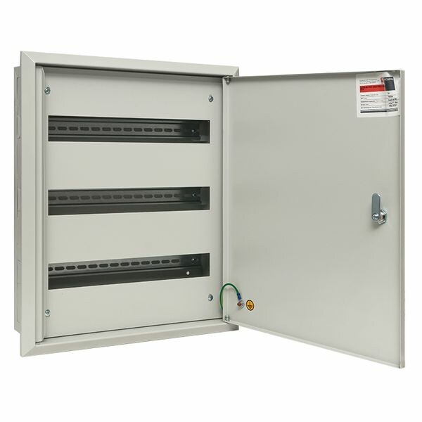 Корпус металлический встраиваемый серии ЩРВ IP31 PROXIMA предназначен для сборки распределительных щитов в нишу с использованием модульной аппаратуры. Идеально подходит для квартир, частных домов, офисов и др. Корпус включает три оцинкованные перфорированные DIN-рейки шириной 380 мм для установки 54 модулей по 18 мм (3х330мм, итого 990мм). Благодаря встроенному монтажу и скошенным углам он легко вписывается в интерьер и выглядит эстетично. Защита IP31 предотвращает попадание твердых частиц и вертикальных капель воды. Защита корпуса обеспечивается полиэфирным порошковым покрытием с фосфатированием, что защищает от коррозии, ультрафиолета, механических повреждений, химических веществ и атмосферных условий. Щит полностью совместим с модульным оборудованием EKF.