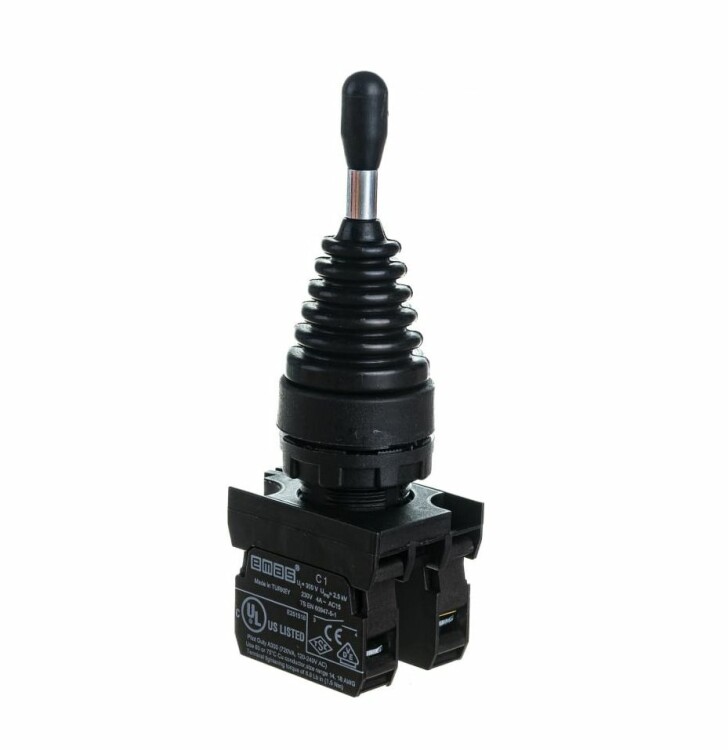 CP101DJ21 Переключатель "Джойстик" на 2 направления без фикс. (2НО). Механический ресурс 500 000 операций. Электрический ресурс 100 000 операций. Рабочие температуры мин./макс. -5/+40 °C. Класс защиты IP 65. Предельная повторяемость операций без нагрузки: 3000 операций в час полная нагрузка: 1200 операций в час. Номинальное напряжение 250 V AC. Номинальный ток 4 А. Коммутируемая мощность 1000 VА. Сопротивление изоляции 10 MОм (мин. 500 V DC). Сечение провода 1,5?2,5 мм