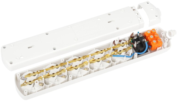 Колодка электрическая Эра K-5es с заземлением, с выключателем, 5 розеток. Корпус выполнен из ударопрочного и негорючего пластика. Рассчитана на максимальную мощность 16А / 3500 Вт и для подключения кабеля сечением до 1,5мм2. Электрическая колодка подойдет для тех, кто хочет сделать удлинитель самостоятельно. Также может использоваться как накладные розеточные блоке в подсобных помещени ях.