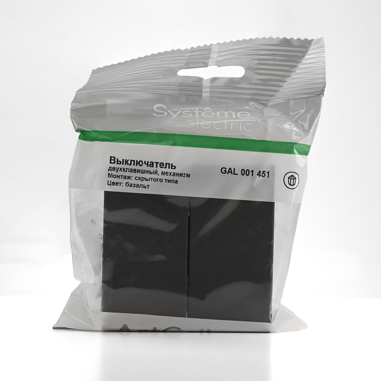 Механизм выключателя 2-клавиш ного Systeme Electric серии ArtGallery в цвете базальт подходит для сетей 250 В, на ток 10 А.