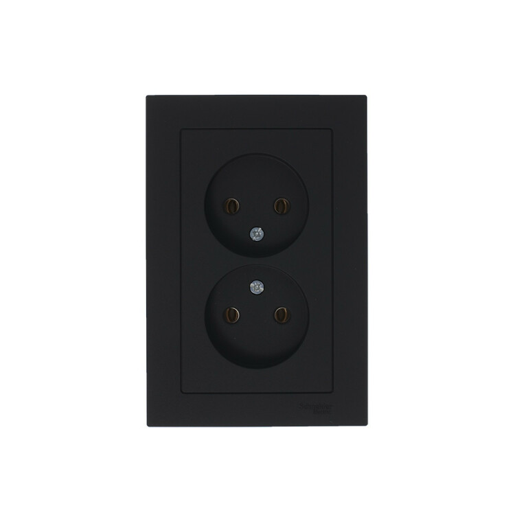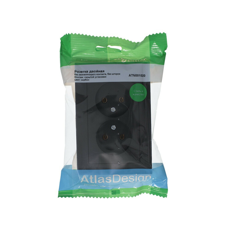 Розетка двойная в сборе Systeme Electric (ранее Schneider Electric) серии AtlasDesign в цвете карбон без заземления и без шторок подходит для сетей 250 В, на ток 16 А. Лицевые детали из качественного ABS-пластика, устойчивого к царапинам и УФ-излучению. Двойная розетка позволяет подключить два устройства в одном месте. Изделие поставляется в комплекте с рамкой того же цвета. Благодаря покрытию «soft touch» к изделию приятно прикасаться.