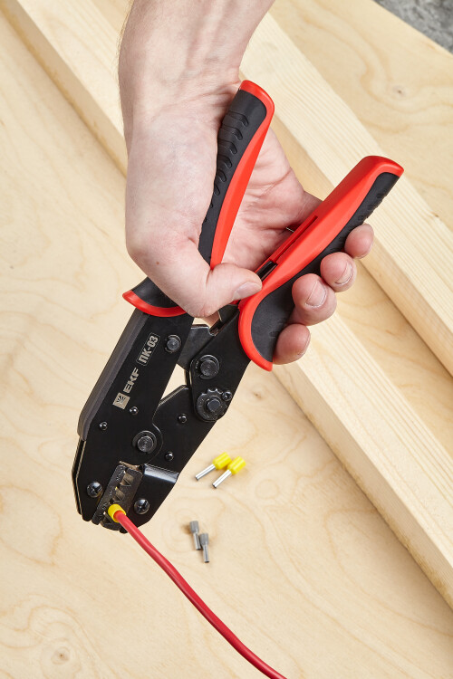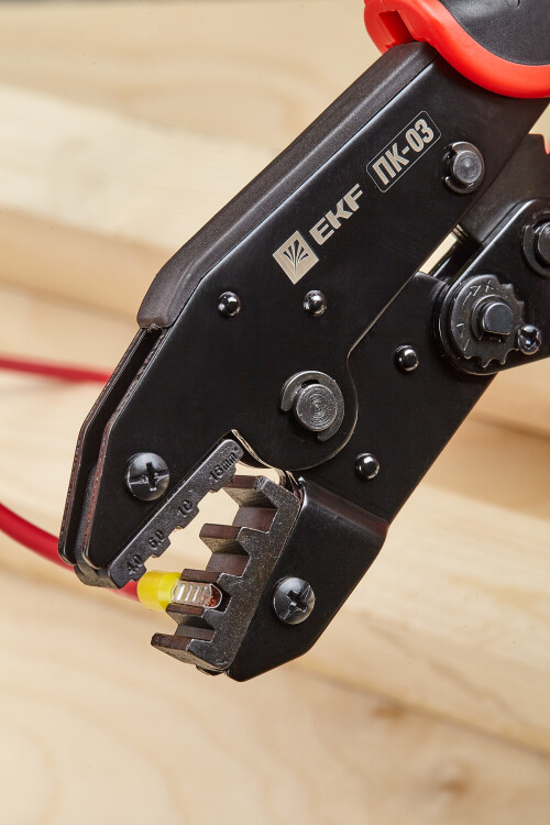 Пресс-клещи pk-03-exp предназначены для НШВ, НШВИ наконечников сечением 4-16 мм2. Инструмент оснащен храповым механизмом с автоматической разблокировкой по завершению цикла опрессовки. Каждая модель имеет маркировку, указывающую значение сечения используемого наконечника или разъема, а также нанесенную цветовую маркировку, соответствующую цвету изолирующей манжеты. Профиль опрессовки - трапеция.