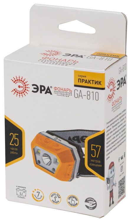 Налобный аккумуляторный фонарь GA-810 оснащен мощным SMD диодом последнего поколения а также двумя небольшими COB м атрицами для свечения в режиме заполняющего света.Фонарь имеет компактные размеры и поместиться даже в маленький карман, и несмотря на это может просветить рекордные 25 часов. При этом время полной зарядки составляет всего 2,5 часа.Фонарь имеет 4 режима работы. В комплекте поставляется провод micro USB для зарядки.